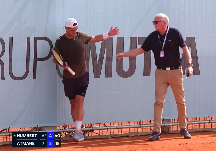 At 4-5, 40-15 on Humbert’s serve, Atmane leaned against the back fence, grimacing in pain. Minutes passed without a point being played. Even after medical staff arrived, he remained hunched over, struggling to move.