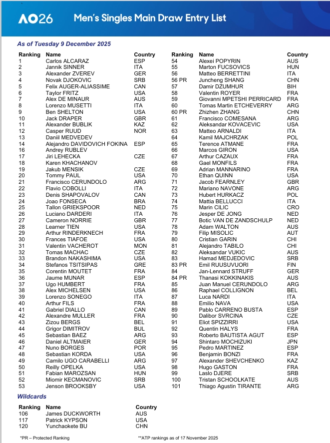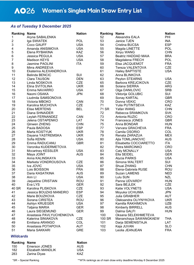 The 2026 Australian Open entry lists come with a red, white and blue hue.