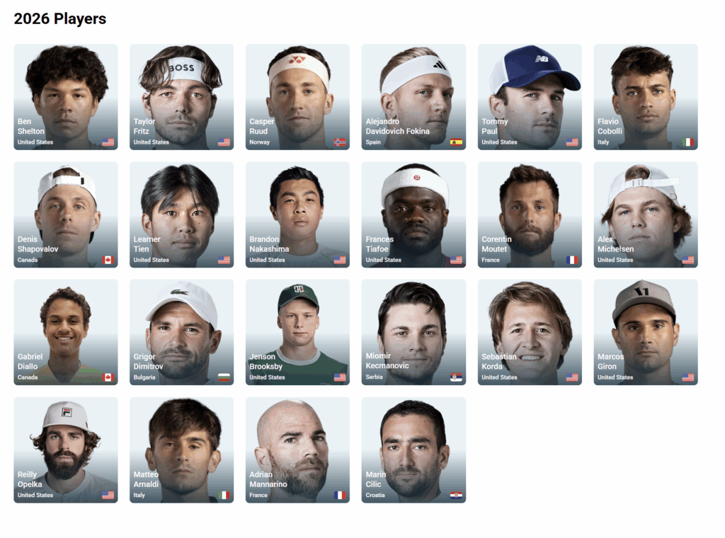 The 2026 main draw includes seven top-25 players, including the top three American men and rising 20-year-old Learner Tien, as well as Casper Ruud, last year’s runner-up, and Denis Shapovalov, the defending champion who defeated Fritz, Paul and Ruud en route to the title.