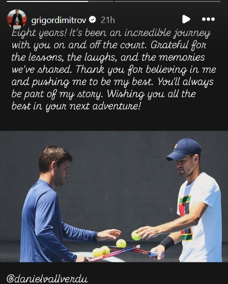 “Eight years! It’s been an incredible journey with you on and off the court,” Dimitrov posted. “Grateful for the lessons, the laughs and the memories we’ve shared.