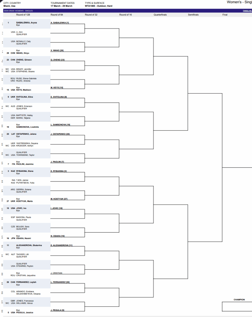 Sabalenka, meanwhile, is projected to face Jasmine Paolini in the quarterfinals as she looks to back up her Indian Wells title with another deep run.