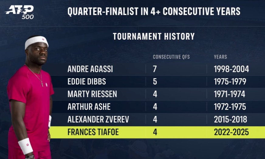 Tiafoe, who grew up in the Washington, DC area and famously trained at the JTCC [Junior Tennis Champions Center] in College Park, Maryland, dominated Wimbledon quarterfinalist Flavio Cobolli 6-1, 6-4 to reach his fourth consecutive quarterfinal at the event.