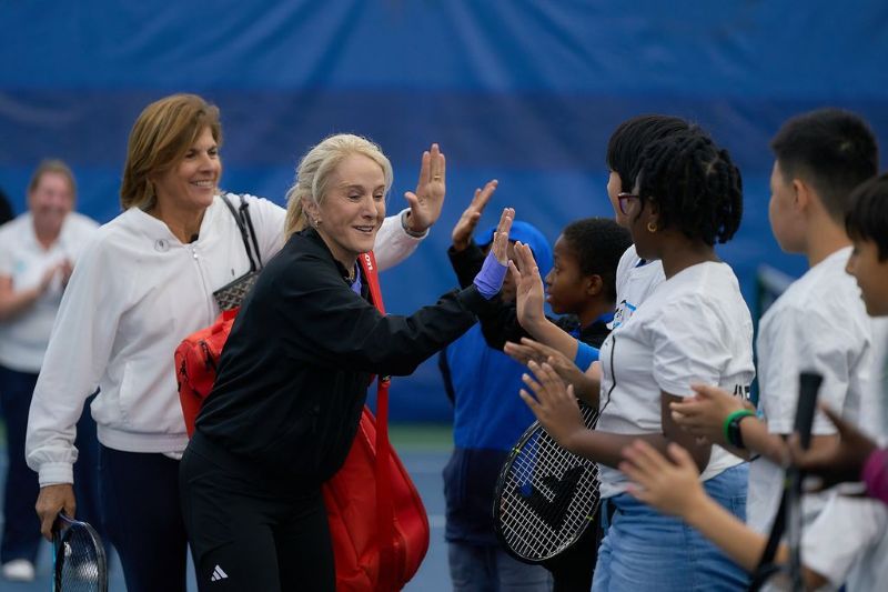 Last Sunday, Hall of Famers Fernandez and Tracy Austin joined International Tennis Hall of Fame President Patrick McEnroe working with junior tennis players from three New York City boroughs at the Be Legendary clinic at the NYJTL Cary Leeds Center for Tennis & Learning—a couple of miles from famed Fordham University where McEnroe’s father graduated with a law degree..